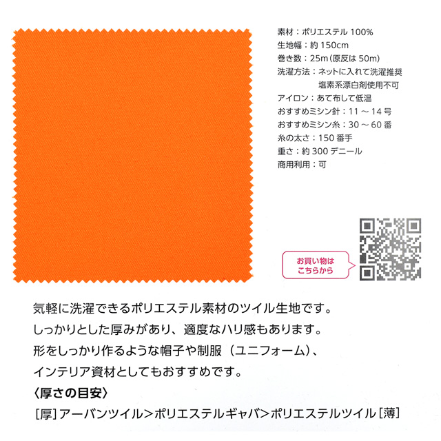 気軽に洗濯できるポリエステル素材のツイル生地です。