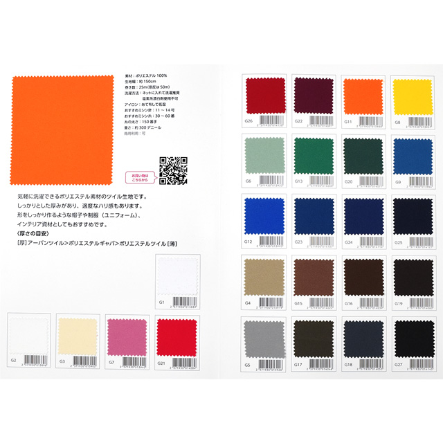 質感がわかるクオリティサンプルと、全色のカラーサンプルがついています。