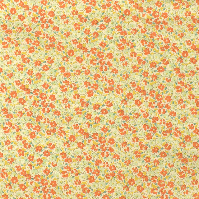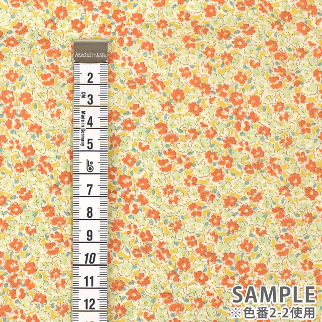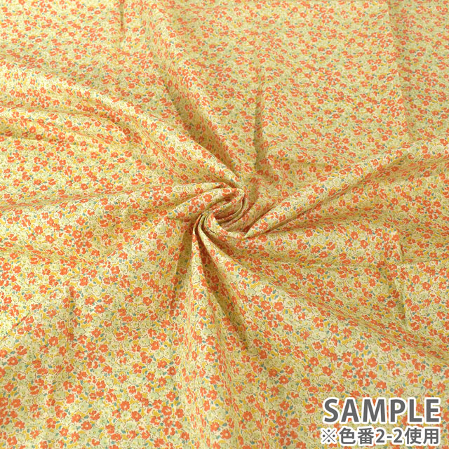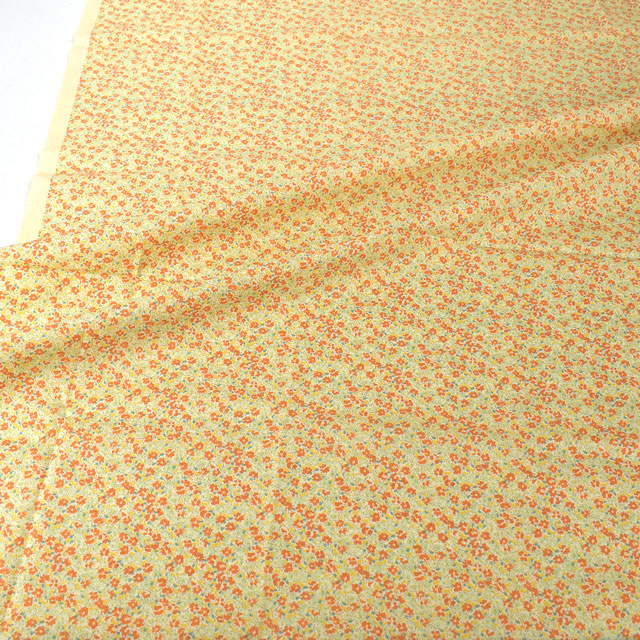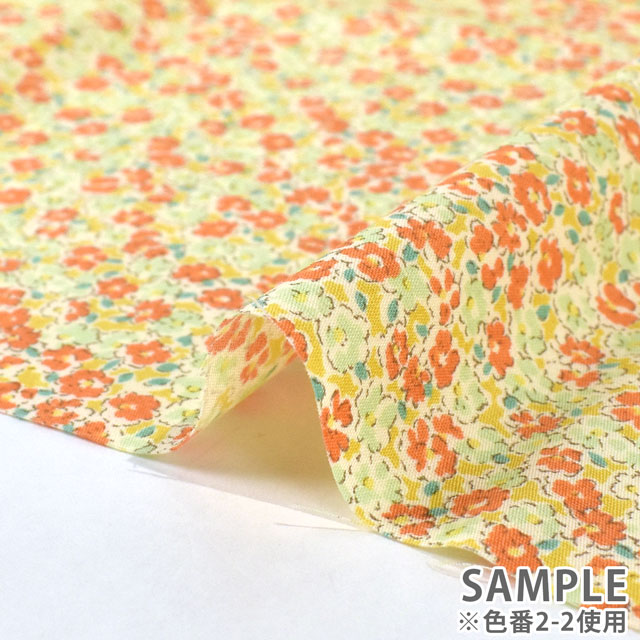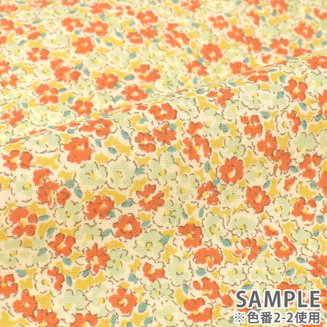 薄地ながら程よいハリもある平織りの綿素材でソーイング初心者の方にも扱いやすく柄が詰まったカラフルな小花模様は小さな小物にも使いやすいデザインです。