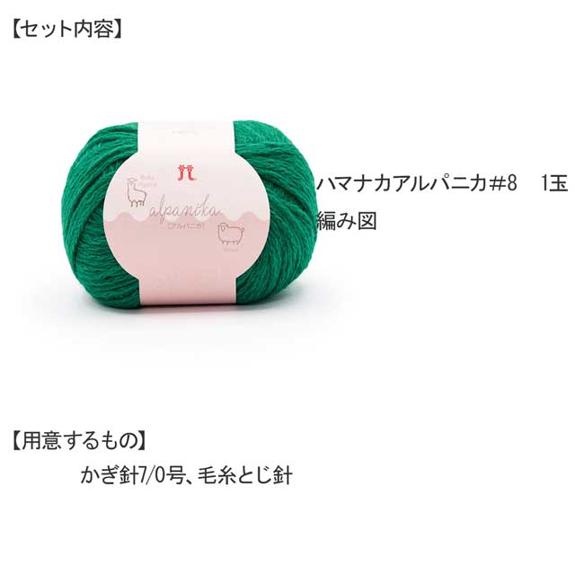 ●セット内容:ハマナカアルパニカ#8 1玉、編み図