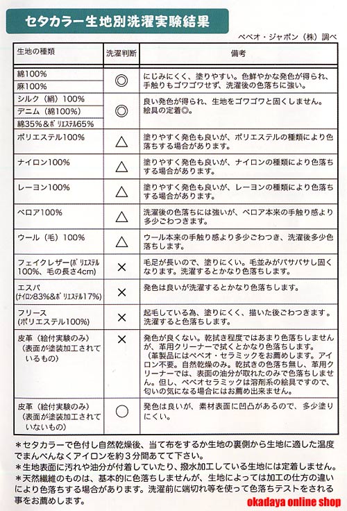 (生地によっては風合いがなくなったり、色落ちするものがあります。)