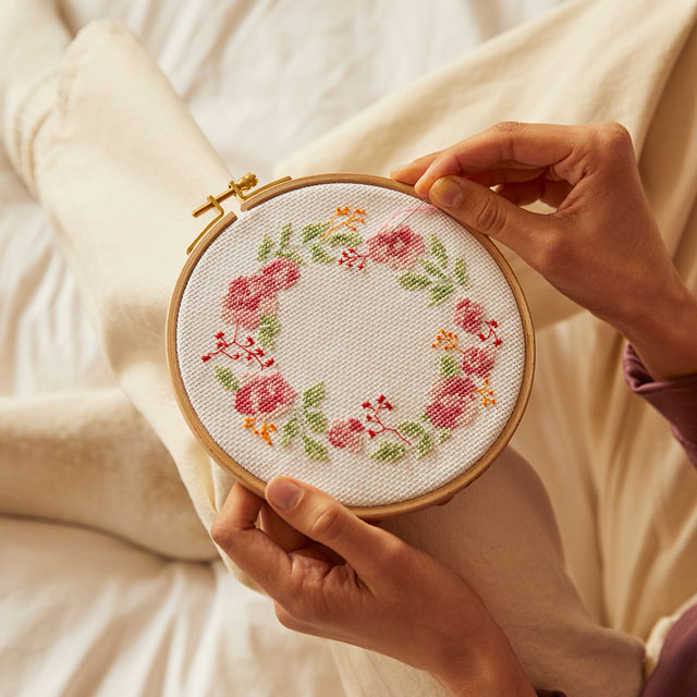 - ●セット内容:刺しゅう布、DMC25番刺しゅう糸、刺しゅう針、刺しゅう枠
