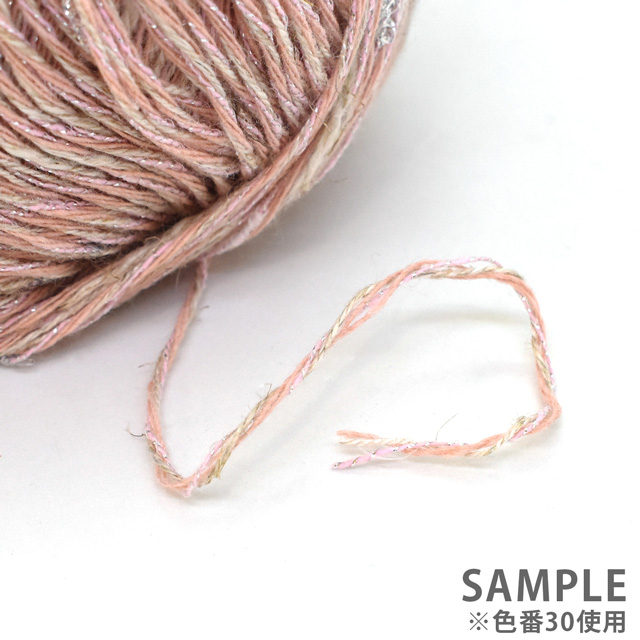 コットン、リネン、ビスコース、ポリエステルなど各素材のいいところがマッチした、さわやかで軽やかな糸です。