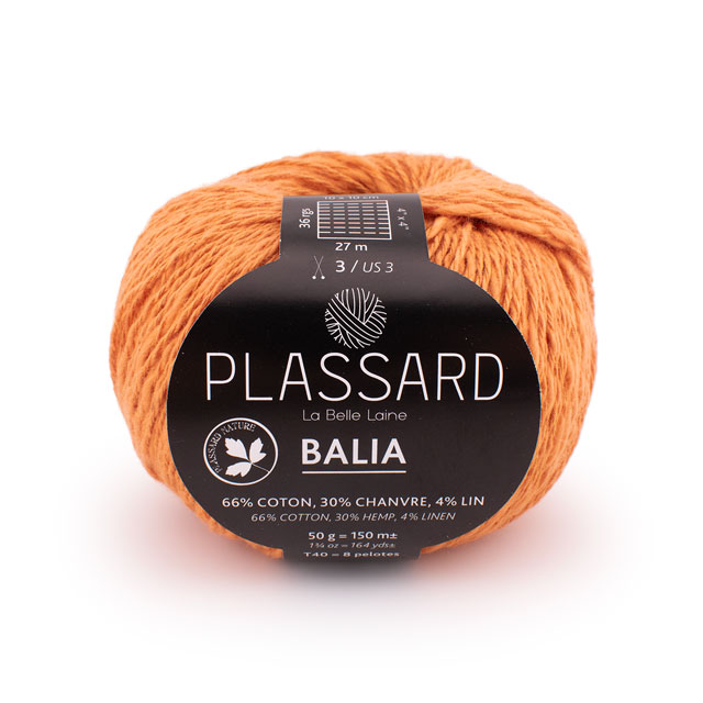 スラブ調の糸でかぎ針・棒針どちらにも向いており、しっかりしたヘンプ入りですが、繊細さ・柔らかさのある編みやすい糸です。