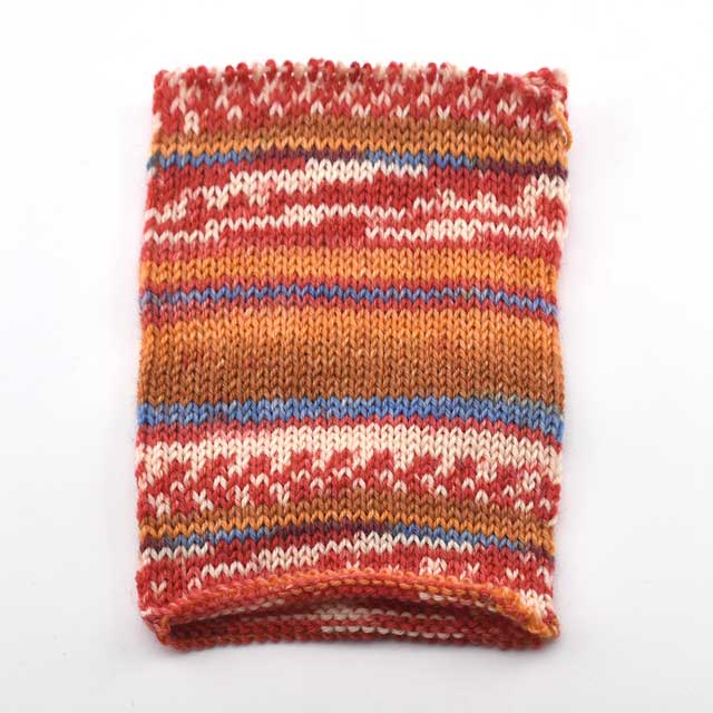 シンプルに編むだけでカラフルな模様が浮かびあがります。