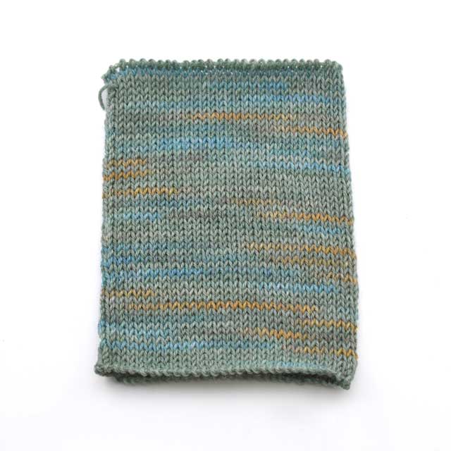 Opal毛糸というとカラフルな段染め毛糸がぱっと思い浮かぶかと思いますが、「フレア」は短めのリピートと調和のとれた落ち着いた色味が印象的なちょっと珍しいシリーズです。