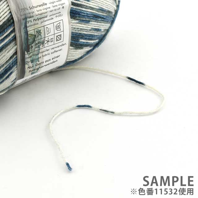 元々はソックヤーン(靴下専用毛糸)として生まれた糸なので、ナイロンを混紡し強度を増しています。