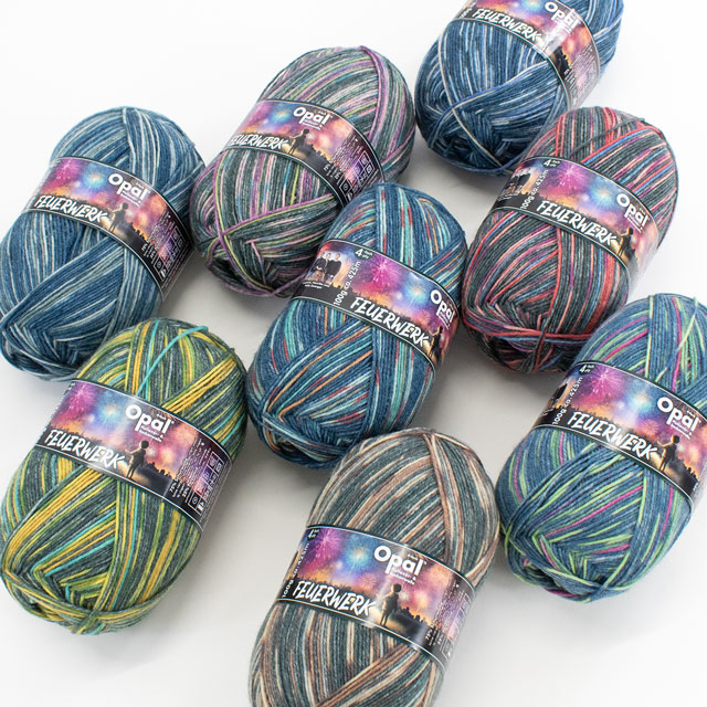 ドイツ生まれのカラフルな段染め毛糸で、暗闇に咲く色とりどりの花火をイメージしたカラー展開となっています。