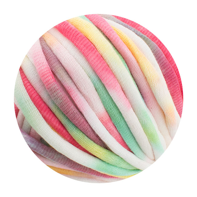 カラフルなカラーが鮮やかで目を惹く、とても柔らかいコットンのチューブヤーンです。