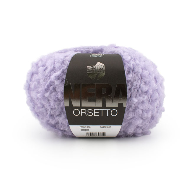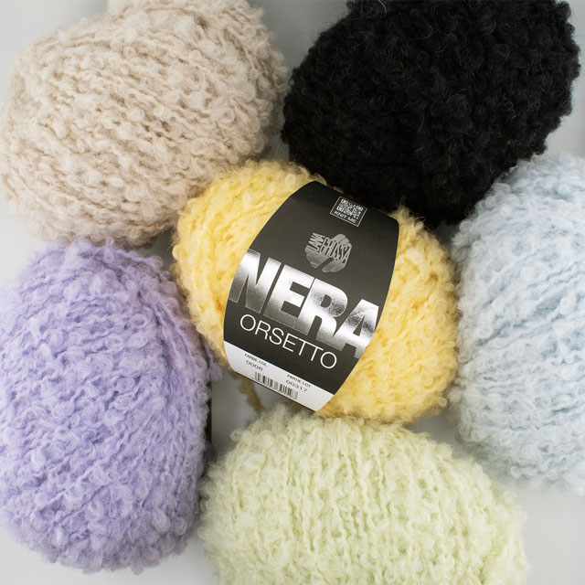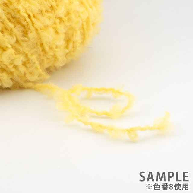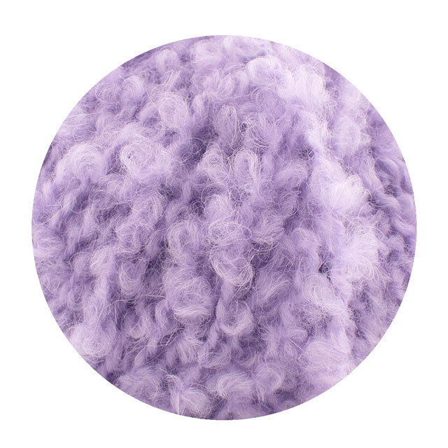 小さくて柔らかいブークレループは特殊な3層織りで形成されており、編んでみるとループが針から滑りにくく、安定して編むことができます。