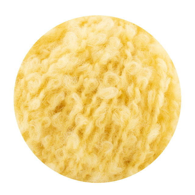 小さくて柔らかいブークレループは特殊な3層織りで形成されており、編んでみるとループが針から滑りにくく、安定して編むことができます。