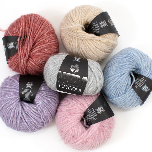 - ●素材:バージンウール24%(エクストラファイン)、ベビーアルパカ20%、ビスコース22%、ポリアミド29%、メタリックファイバー5%