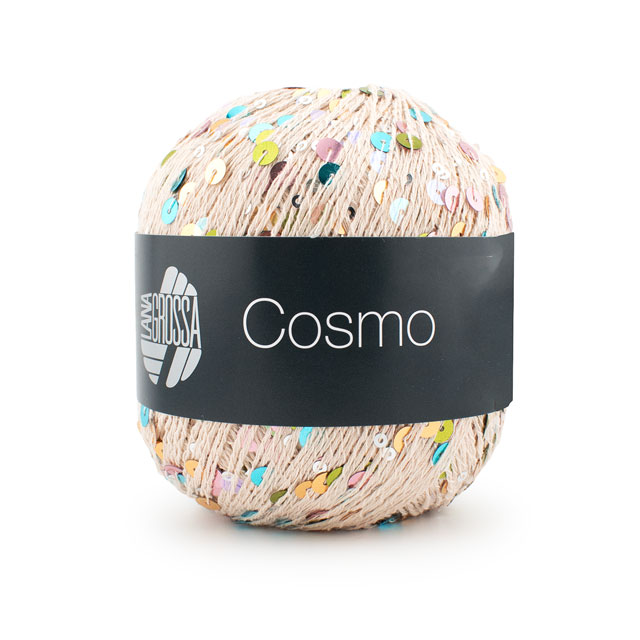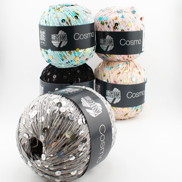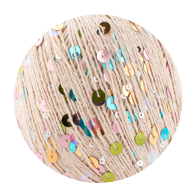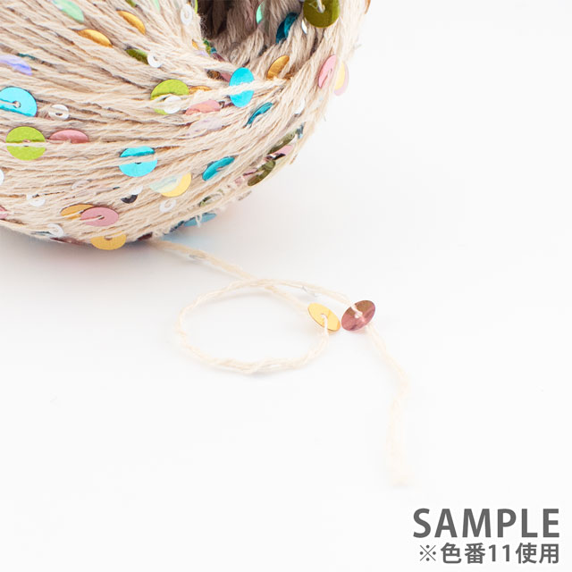 大小さまざまなスパンコールが、コットン糸全体に散りばめられた華やかな糸。