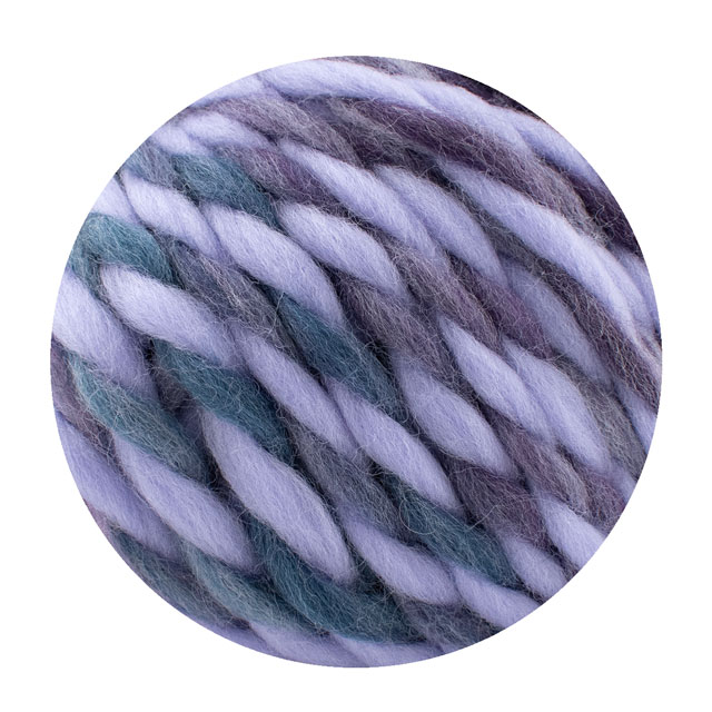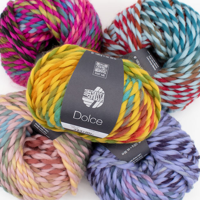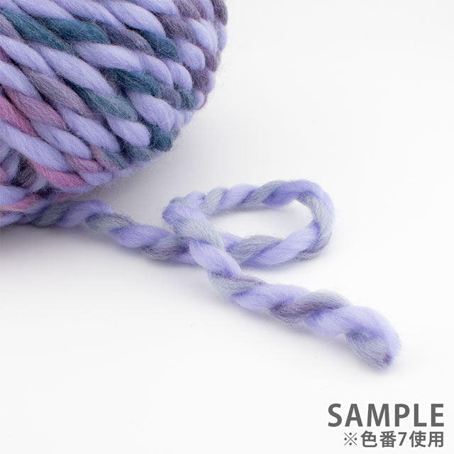グラデーションと単色の2本の糸をゆるく撚り合わせ、まるでキャンディーのようなポップでかわいい糸。