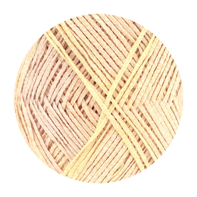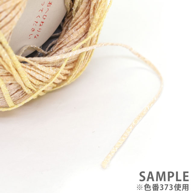 扁平チューブ糸にナイロン糸をランダムに巻いた、表情のあるロングピッチのグラデーション糸です。