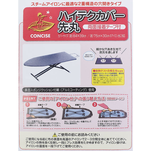 ●サイズ:約84cm×39cm(約75cm×30cmのアイロン台に対応)