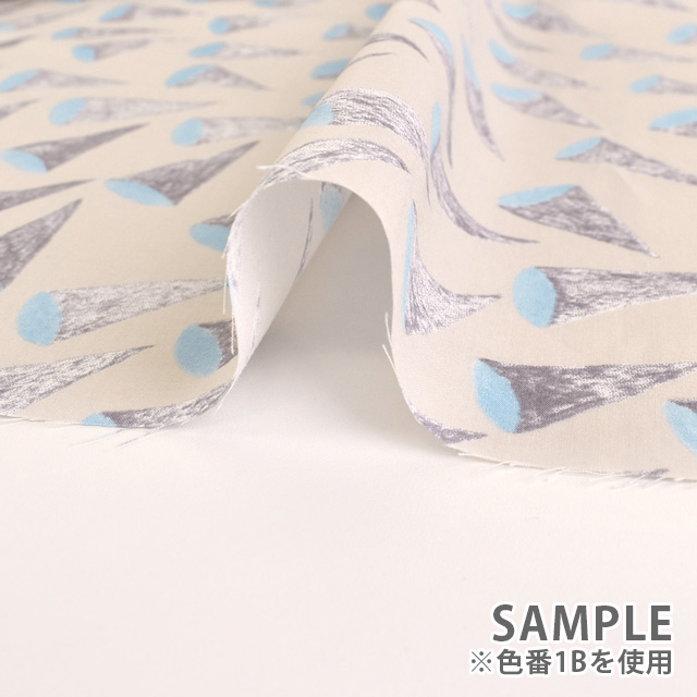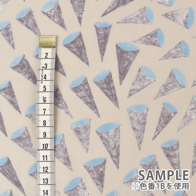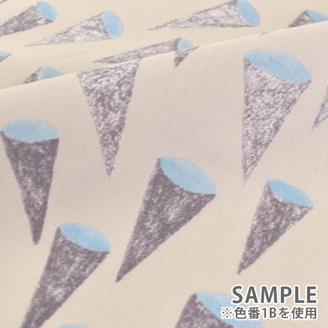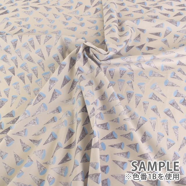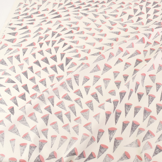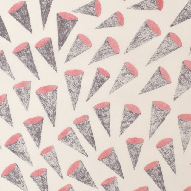 アイスクリームのコーンのような三角形のモチーフが個性的でありながらお洋服に使用しても可愛い生地です。