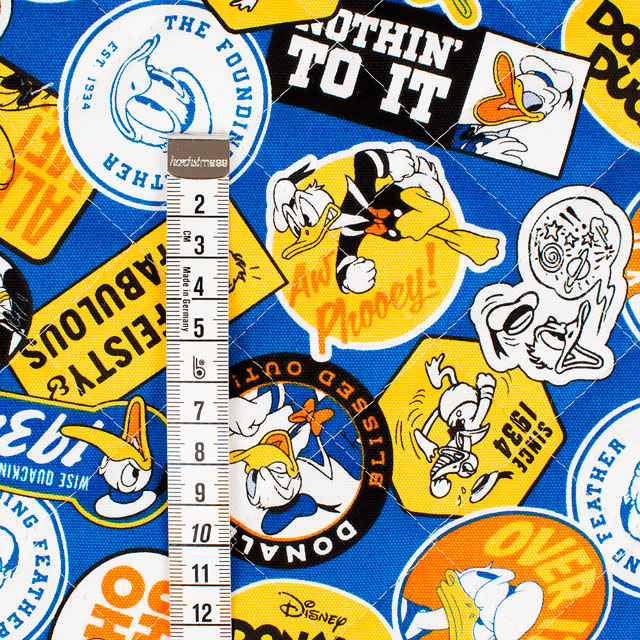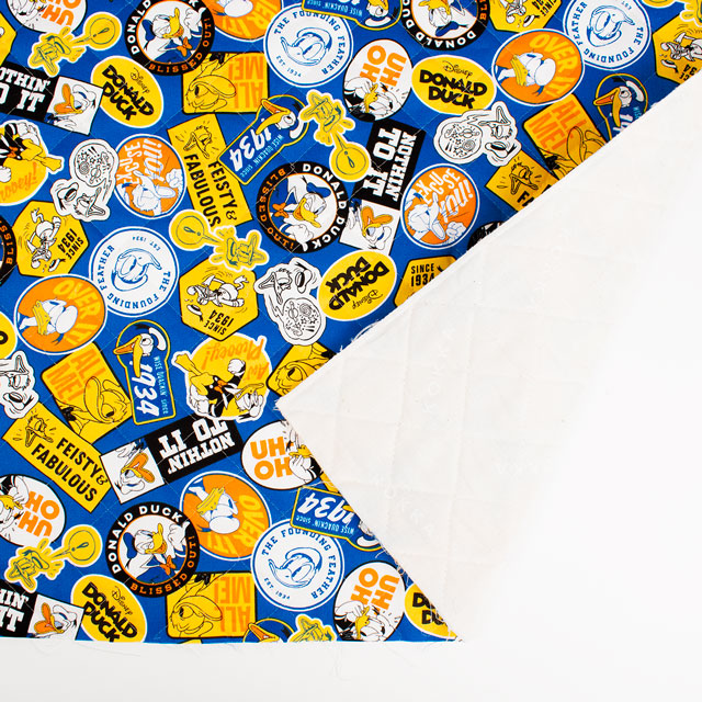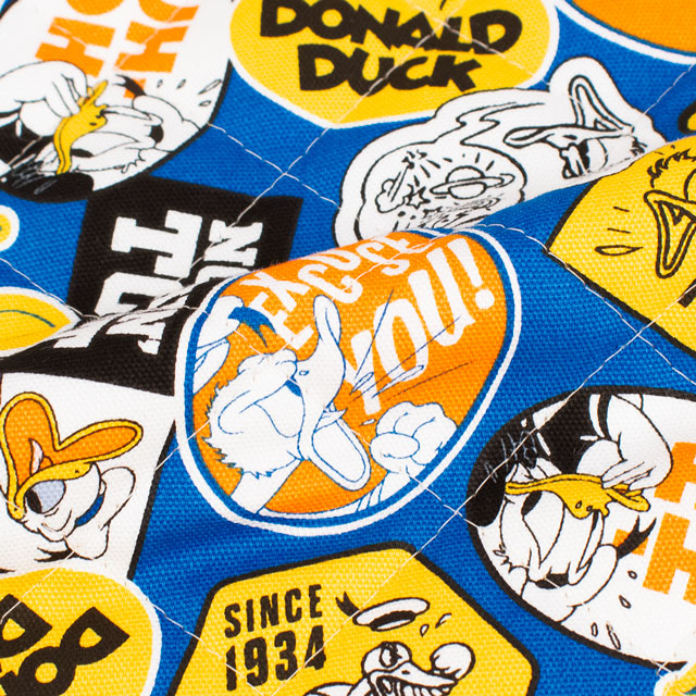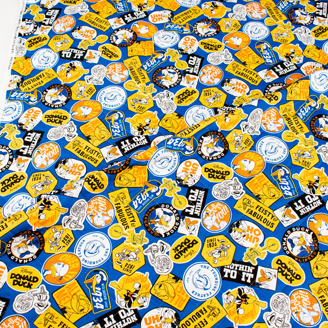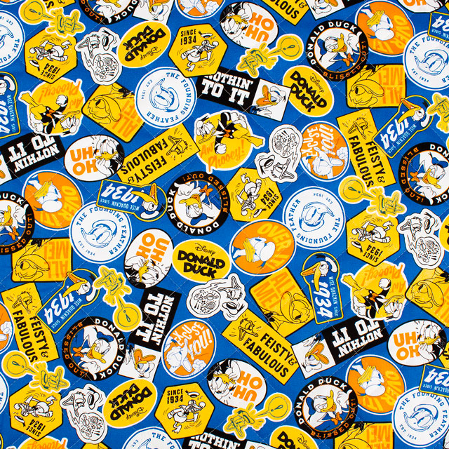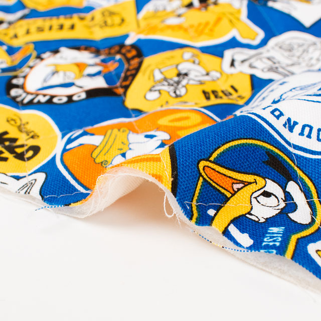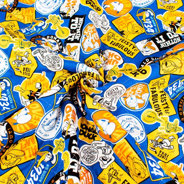 ディズニーの人気キャラクター、ドナルドダックの90周年を記念してデザインされたプリント生地です。