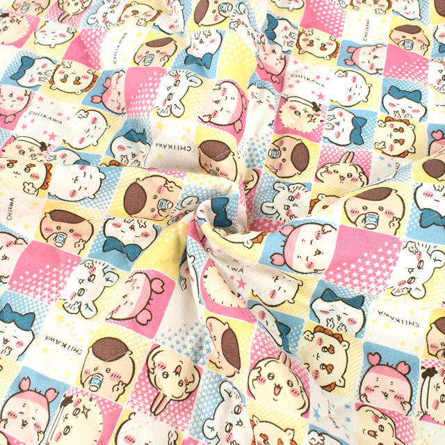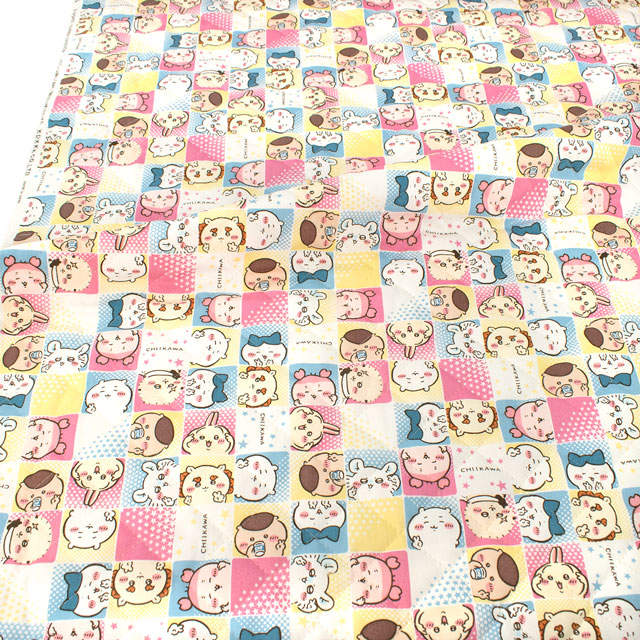 ちいかわのキャラクターが勢ぞろいのかわいらしい柄です。