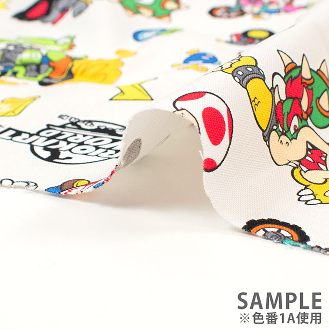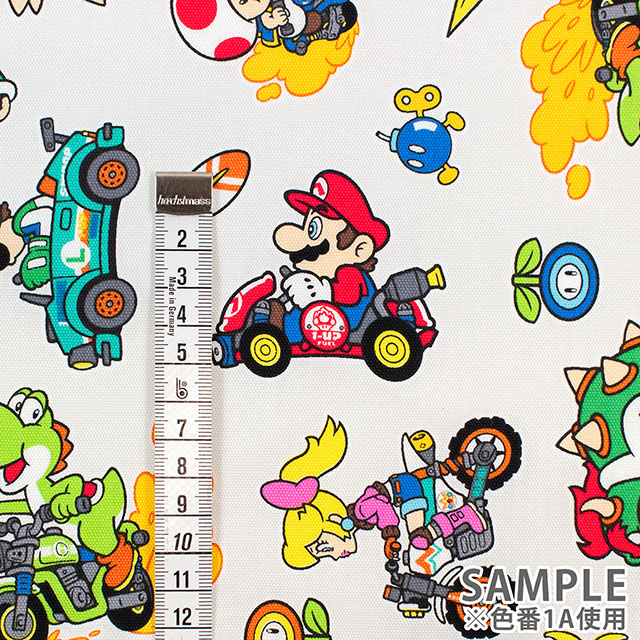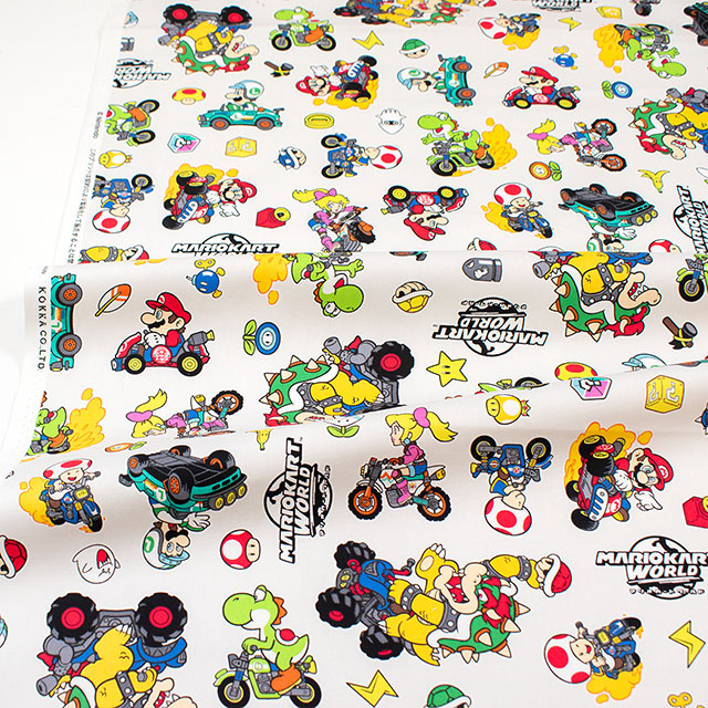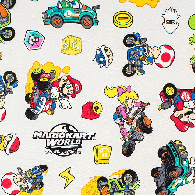 人気ゲーム、マリオカートワールドのプリント生地です。