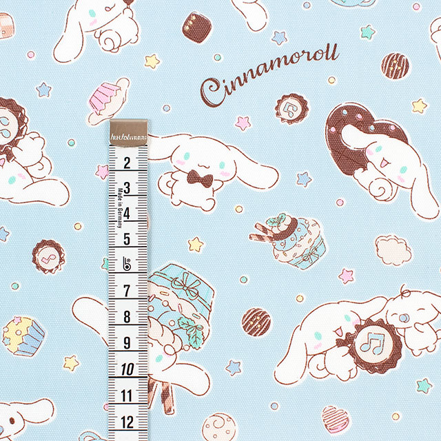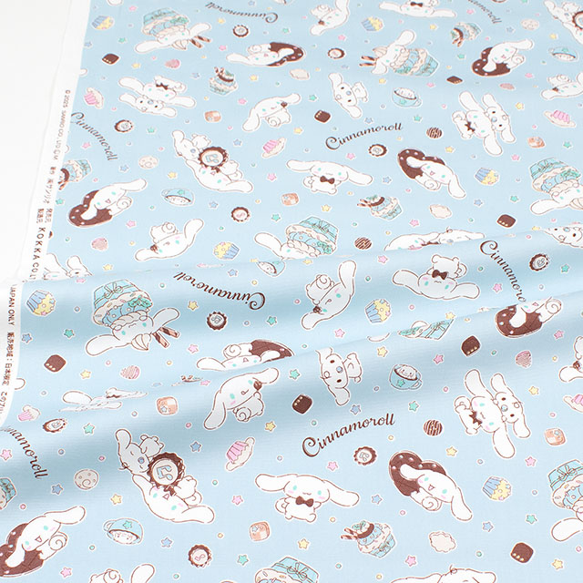 年齢問わずに人気のキャラクター、シナモロールのスイーツ柄の生地です。
