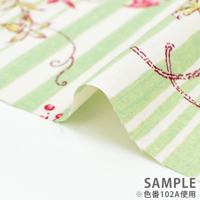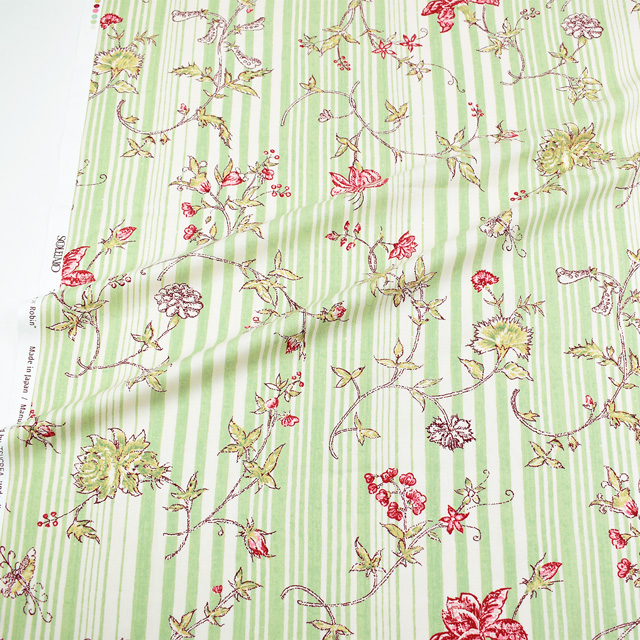 ”ふんわりとした、軽やかな”という意味を持つ大振りの花柄「アエリエンヌ」と独特なリズムのストライプ「ロビン」を組み合わせたデザイン。