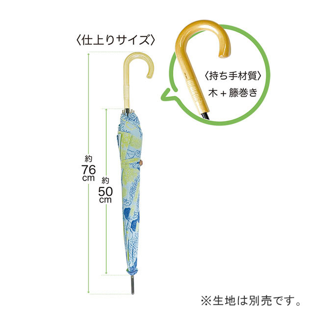 ●セット内容:持ち手付き傘骨 1本、作り方説明書、実物大型紙、つゆ先 8コ+予備、留め具 1コ