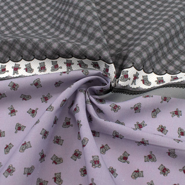 カットクロス ちいさな世界のちいさな生地 milk latte-ミルクラテ- ねこちゃん/ローン(TTL-12) パープル 06Ab99_
