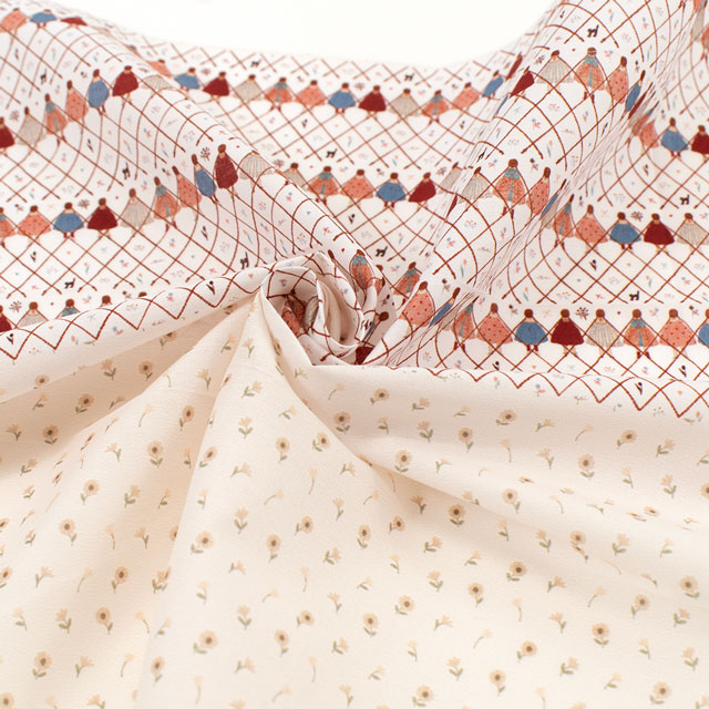 海外絵本のような世界感で人気のイラストレーターくらはしれいさんのプリントローン生地