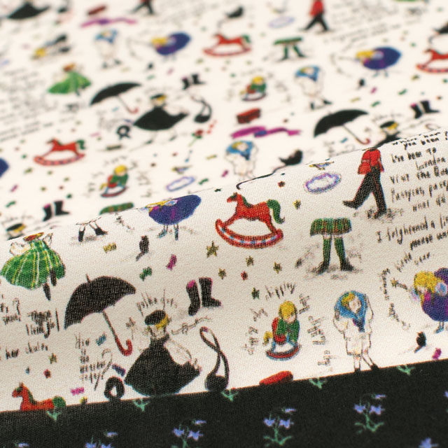 海外絵本のような世界感で人気のイラストレーターくらはしれいさんのプリントローン生地