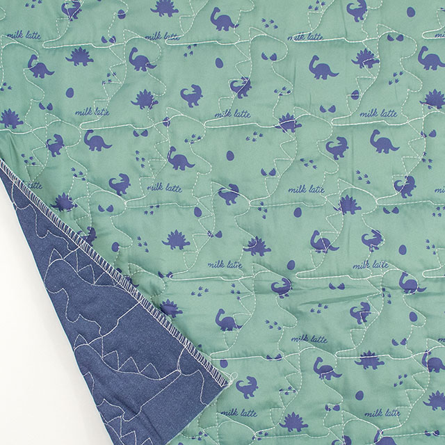 生地 milk latte-ミルクラテ- デニム風デザインキルト ダイナソー/キルティング 約130cm幅×50cmカット(MLDQ) 09A.ネイビー 09Ad07_