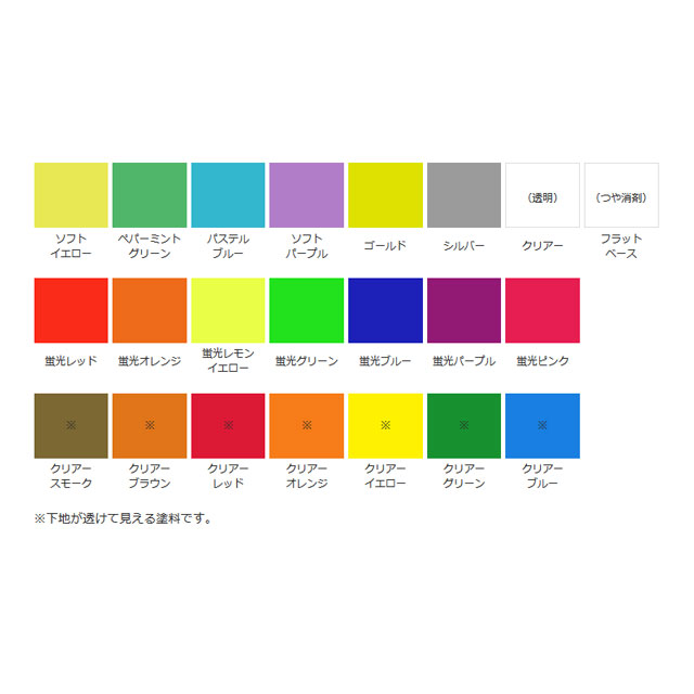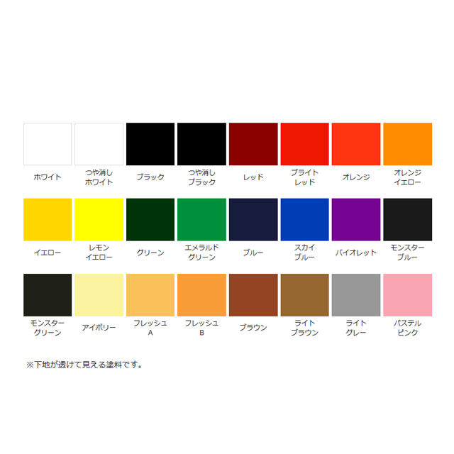 ※ネオウレタン蛍光やソフビカラーの蛍光色は下地にホワイトを塗装すると、発色が良くなります。