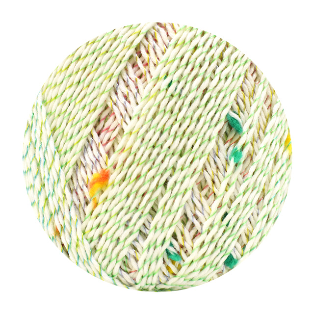 3色でかすり染めした小さなモールがアクセントの合太ファンシーヤーン。