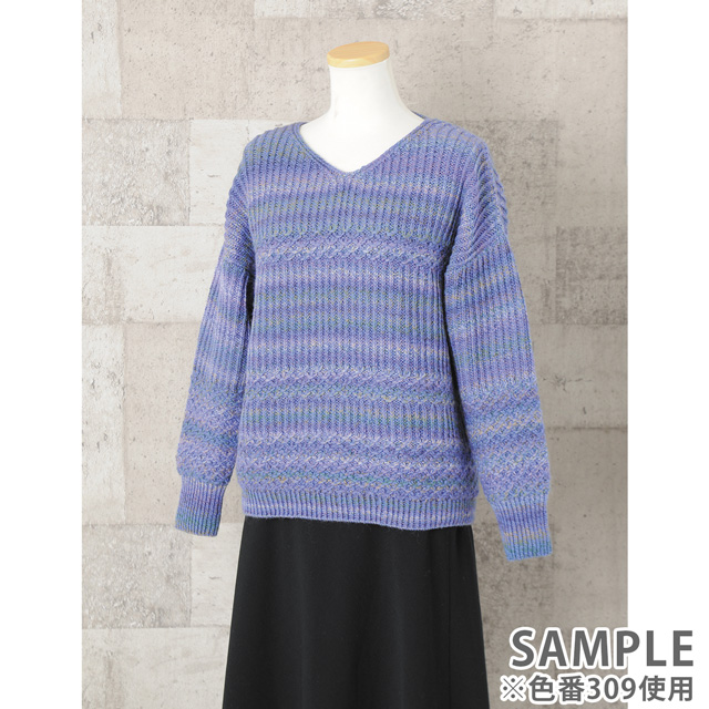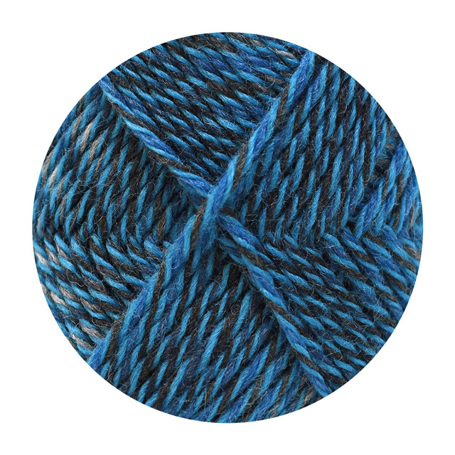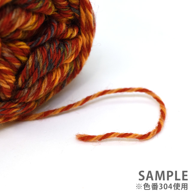 数種類のウールのブレンドにより、膨らみ感とソフトな風合いなので、裏に糸が渡る編み込みに使用しても比較的軽い作品に仕上がります。