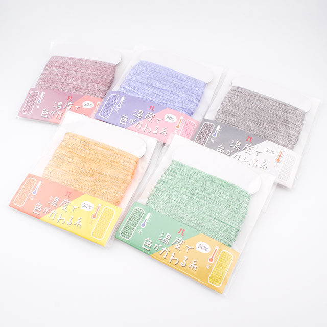 30℃を境に糸の色が変化する不思議な手編み糸です。