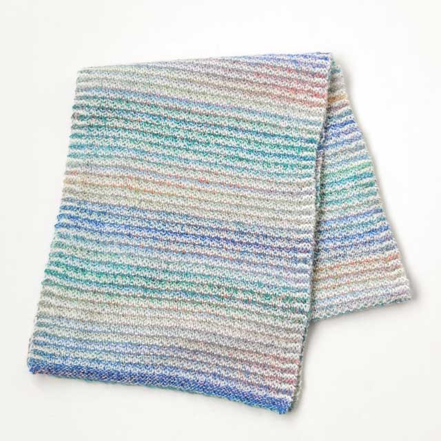 シンプルなデザインですが、交互に違う色の糸を入れることで、凝ったイメージのストールになります。
