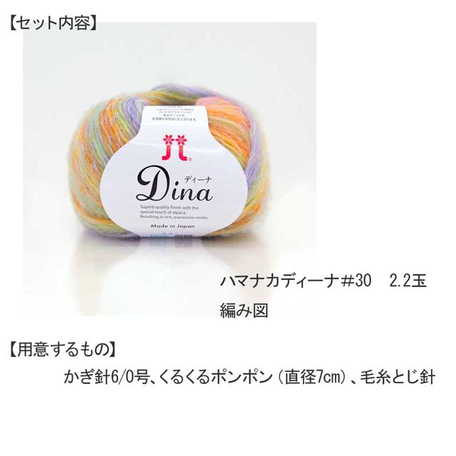 ●別途ご用意いただくもの:かぎ針6/0号、くるくるポンポン(直径7cm)、毛糸とじ針