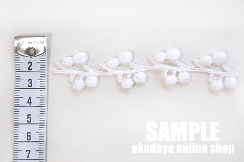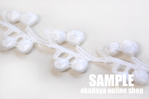 ボンボンがついた可愛いケミカルレースです。