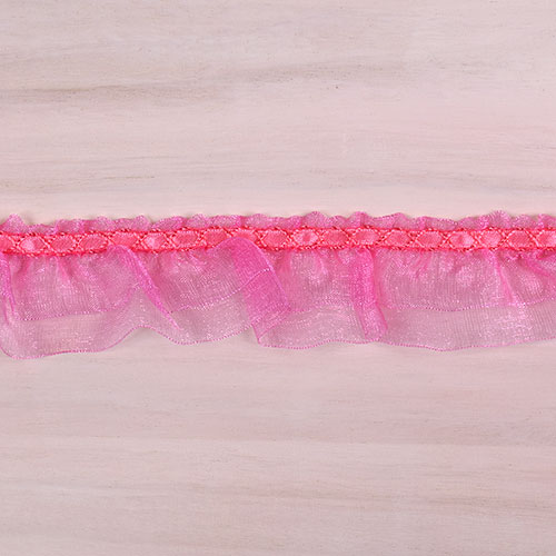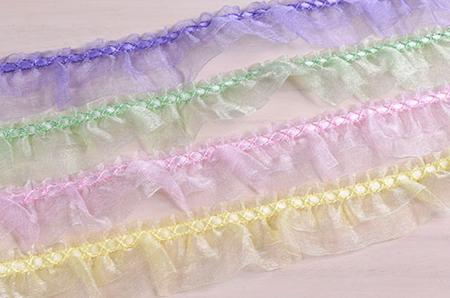 2段に重ねたオーガンジーにギャザーを寄せた可愛いフリルレースです。