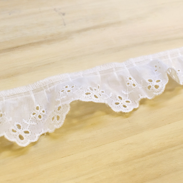 綿ギャザーレース(MO52) 約3.6cm幅 1.白 07Ac99_