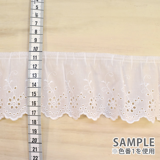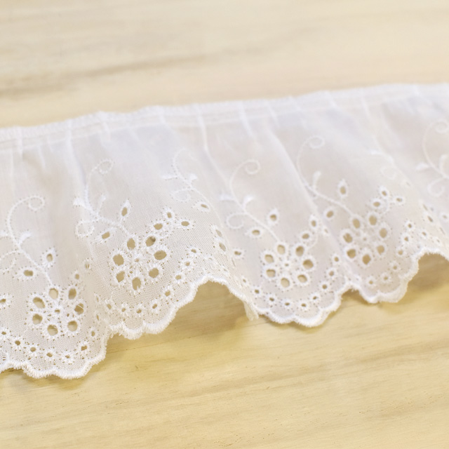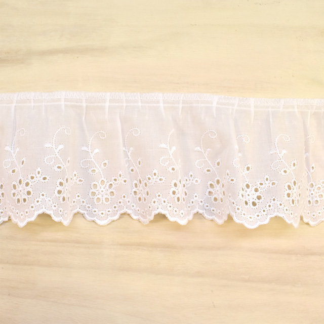 綿ギャザーレース(MO59) 約6.8cm幅 1.白 07Ac99_