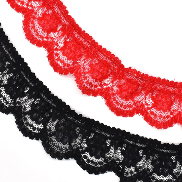 スカラップと縁のドット模様がかわいらしく衣装から小物まで使いやすいデザインです。