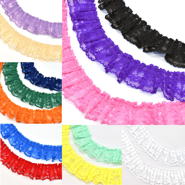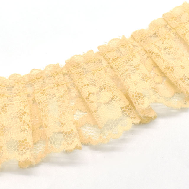 ラッセルフリルギャザーレース(05144Q) 約3.5cm幅 14.イエローベージュ 07Ac99_