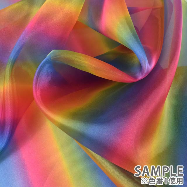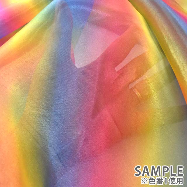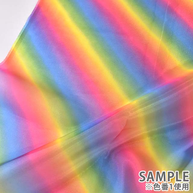 鮮やかなレインボー柄をプリントしたオーガンジーです。