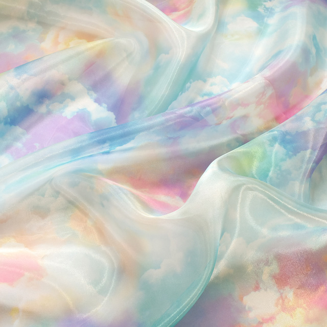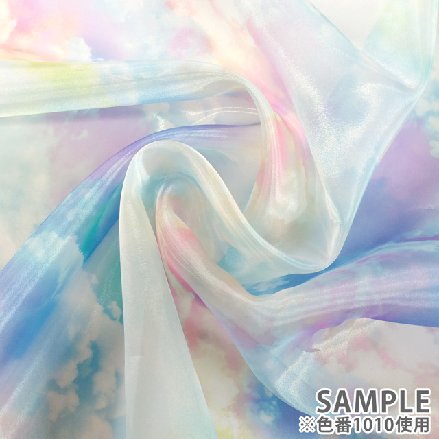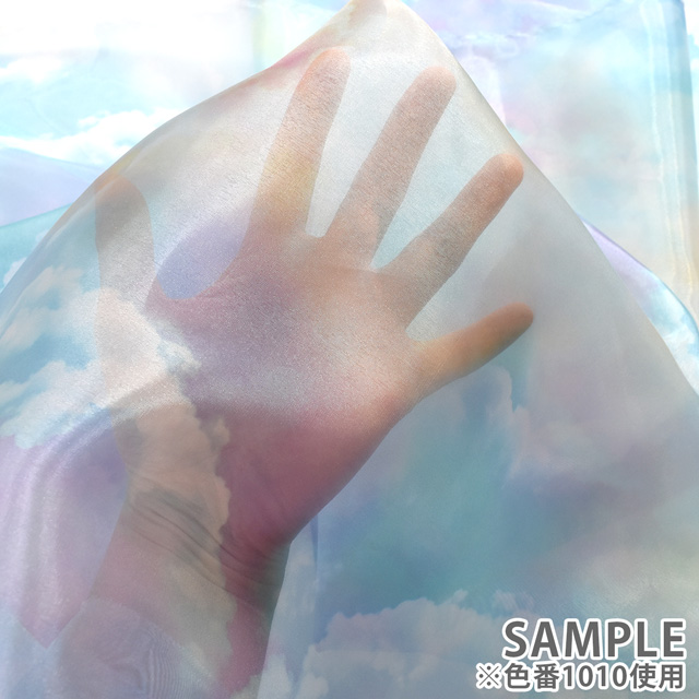 雲の柄のプリントオーガンジーです。