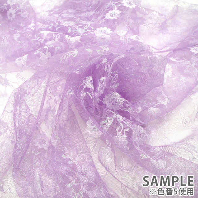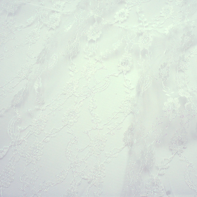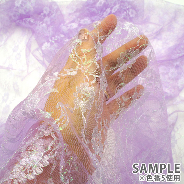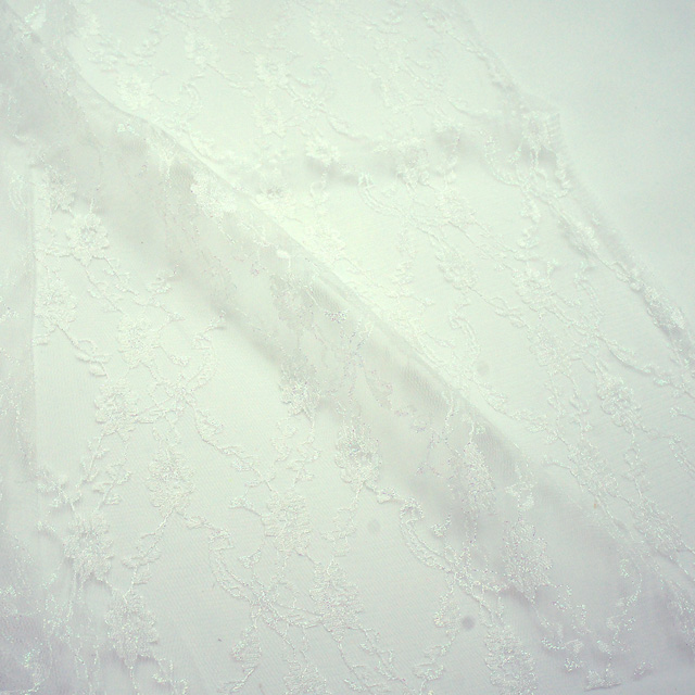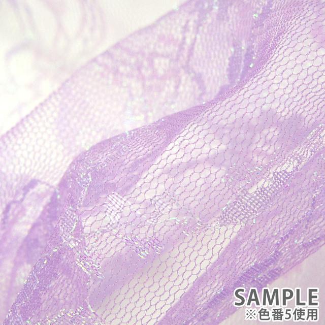キラキラと輝くオーロラの糸で刺繍された繊細で柔らかなラッセルレースです。