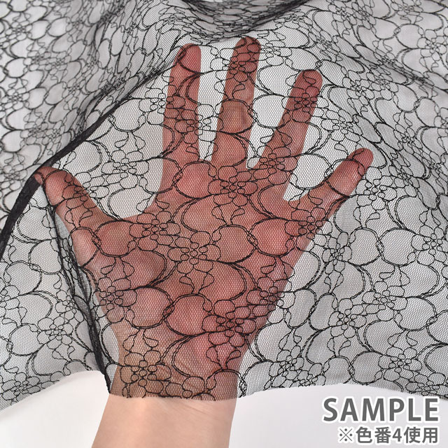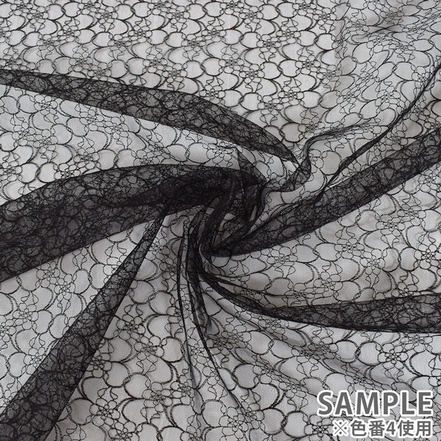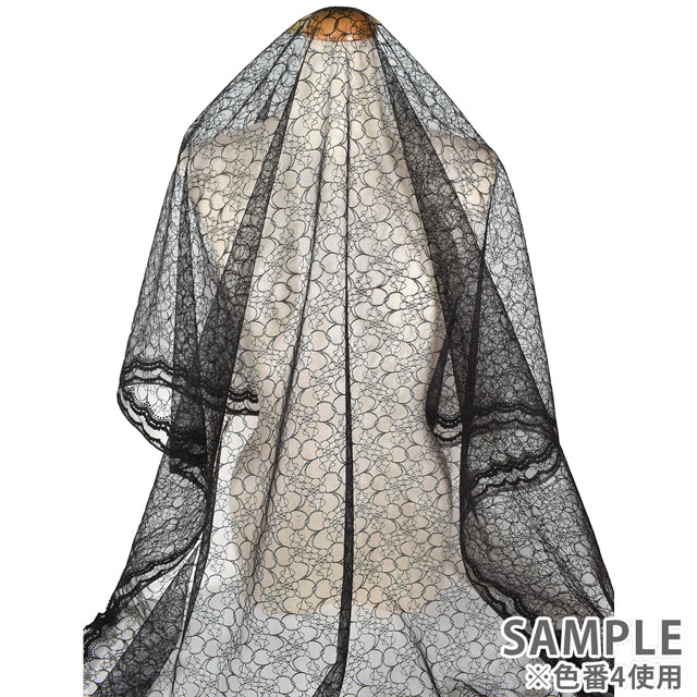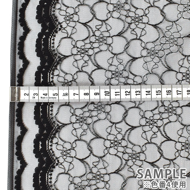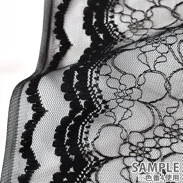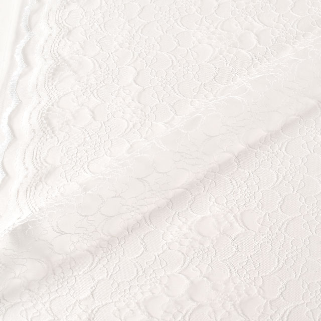 全体的に花柄、両端にスカラップ模様の入ったレース生地。