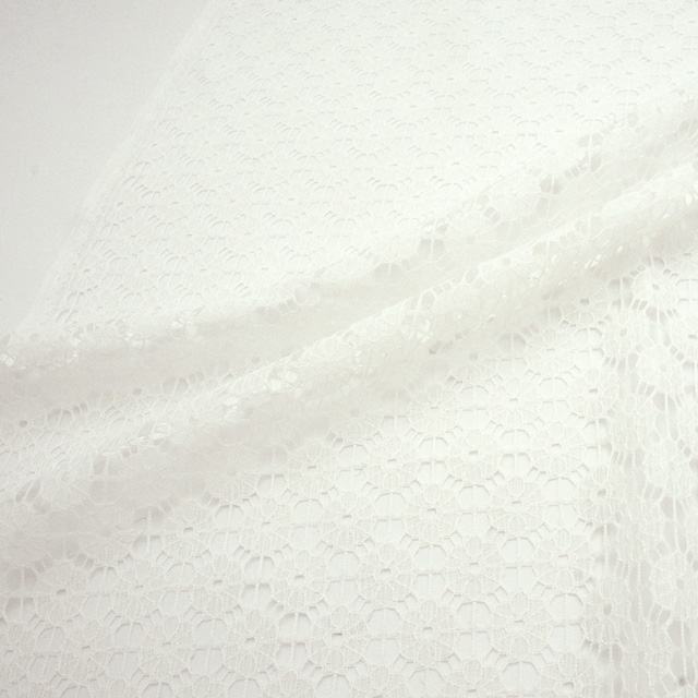 全体の小花柄と透け感が特徴のラッセルレースです。