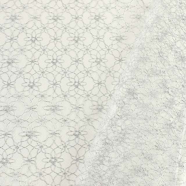 30デニールほどのチュールにラメ糸を使った、軽さが特徴の花柄レースです。