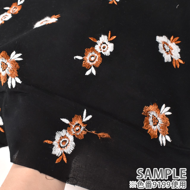 薄手のローン生地にカラフルな花柄が刺繍されたコットンのレース生地です。